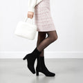 These 5.5cm heel short boots feature a wide square toe that is extremely trendy.