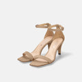 Simple strappy sandals have a 7cm heel for a mature look. These sandals have a trendy square toe and an ankle strap that adds stability, making them great for showing off your beautiful legs.