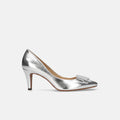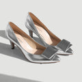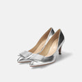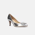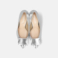 予約:2026SS:リボン付き ポインテッドトゥパンプス(m72027)シルバー
